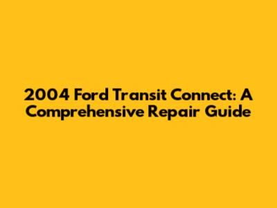 2004 Ford Transit Connect: Troubleshooting & Repair