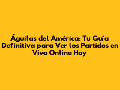Águilas Del América: Dónde Ver Los Partidos En Vivo Hoy