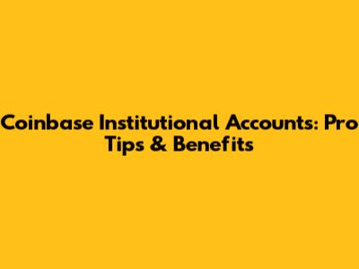 Coinbase Institutional Accounts: Pro Tips & Benefits