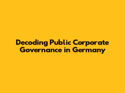 Decoding Public Corporate Governance In Germany