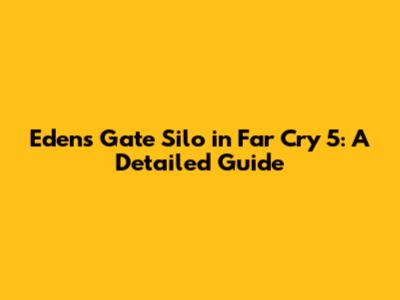 Eden's Gate Silo In Far Cry 5: A Detailed Guide