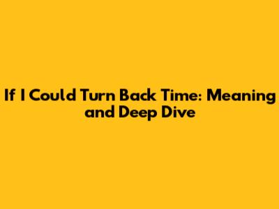 If I Could Turn Back Time: Meaning And Deep Dive