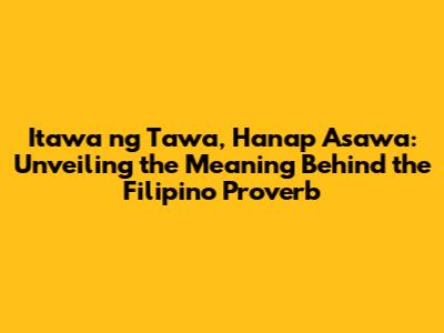 Hey guys! Ever heard the saying "Itawa ng tawa, hanap ay asawa?" It sounds kinda funny, right? But like many Filipino proverbs, there's a deeper meaning hiding beneath the surface. Let's dive in and explore what this proverb truly means and how it reflects Filipino culture and values. This proverb, deeply embedded in Filipino culture, offers a glimpse into the values and expectations surrounding relationships and finding a partner. It's more than just a funny saying; it's a reflection of how Filipinos view courtship, marriage, and the importance of humor and resilience in navigating the search for a life partner. Understanding this proverb requires exploring its historical context, the nuances of the Tagalog language, and the cultural norms that shape its interpretation. It serves as a reminder that beneath lightheartedness, there often lies wisdom and profound observations about human behavior and societal expectations.