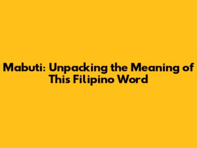 Mabuti: Unpacking The Meaning Of This Filipino Word
