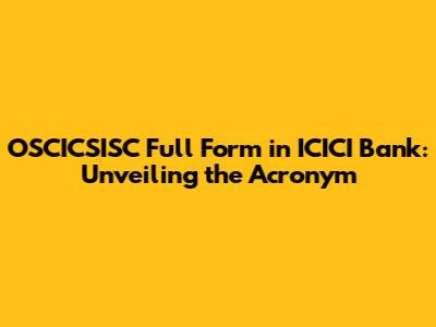 OSCICSISC: Decoding The Full Form And Significance In ICICI Bank