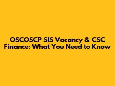 OSCOSCP SIS Vacancy & CSC Finance: What You Need To Know