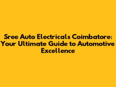 Sree Auto Electricals Coimbatore: Your Ultimate Guide