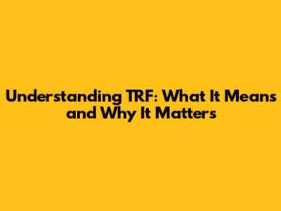 Understanding TRF: What It Means And Why It Matters