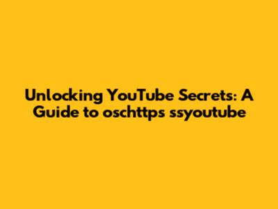 Unlocking YouTube Secrets: A Guide To Oschttps Ssyoutube